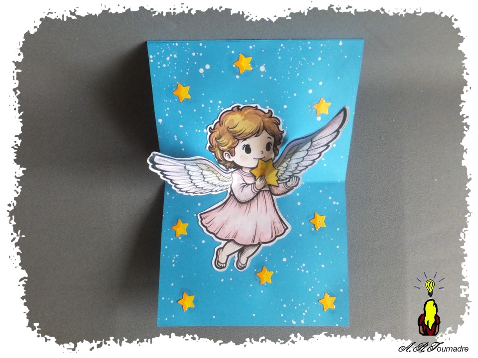 Le petit ange est un dessin du net adapté par infographie pour le rendre compatible du gabarit de pliage pop-up.