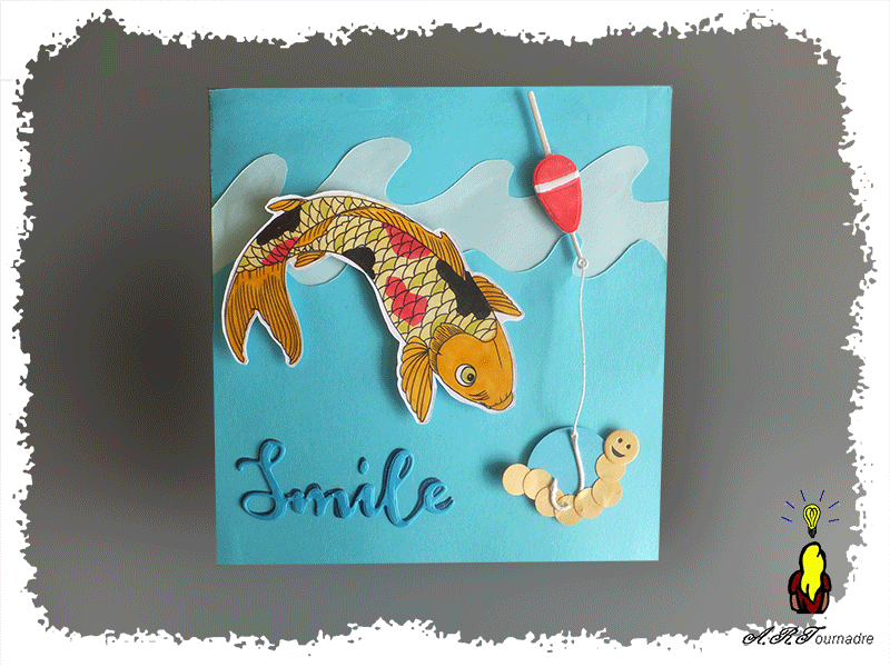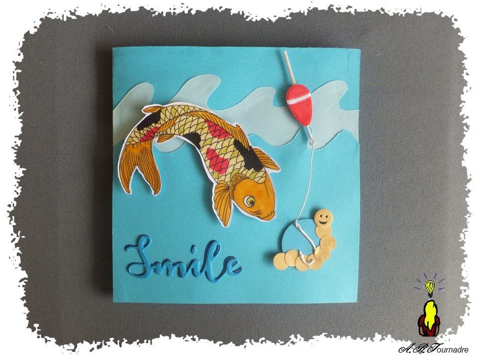 Le petit ver est réalisé à la perforatrice, sa tête en smiley est découpée d’après un die de 4 en scrap.