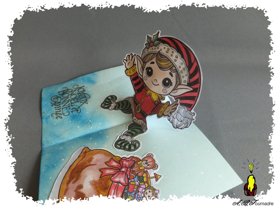 A chaque fois que vous ouvrez et fermez la carte le lutin emballe un paquet de plus et le met dans le sac.